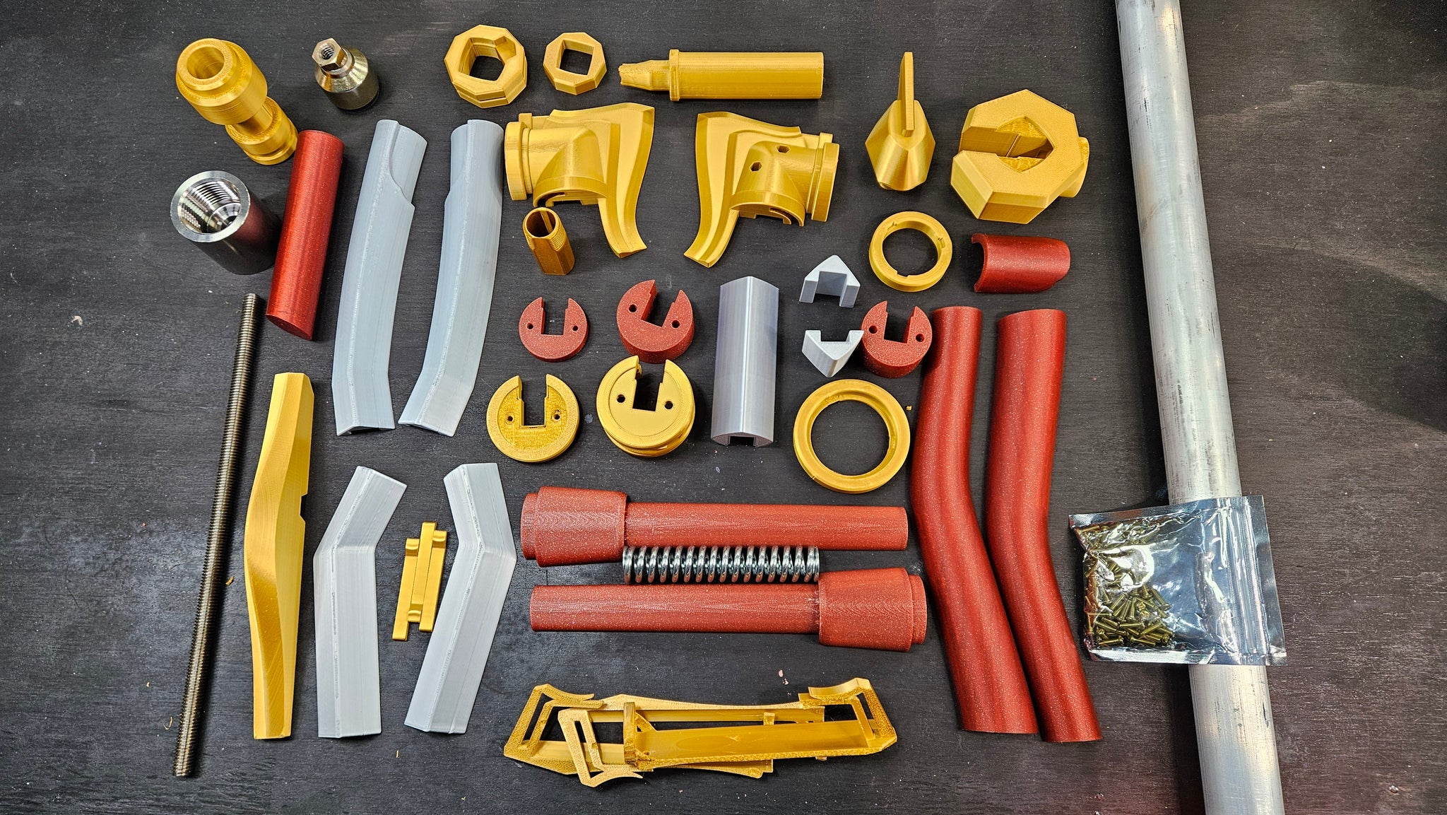Assembly involves a custom metal core and several off-shelf parts including an aluminum NTP pipe, spring, threaded rod and some minor hardware. As much information as possible is included in the build guide. Properly constructed items will bear weight.